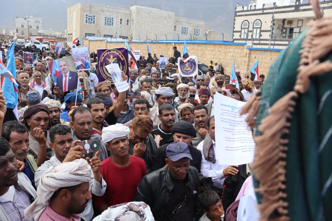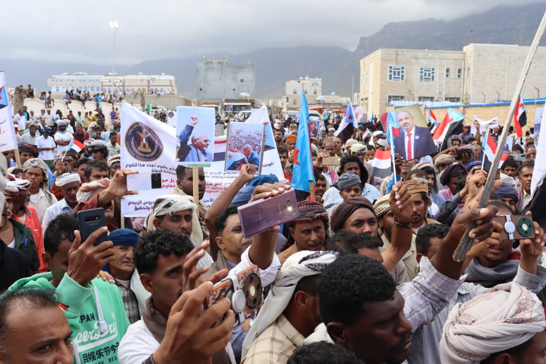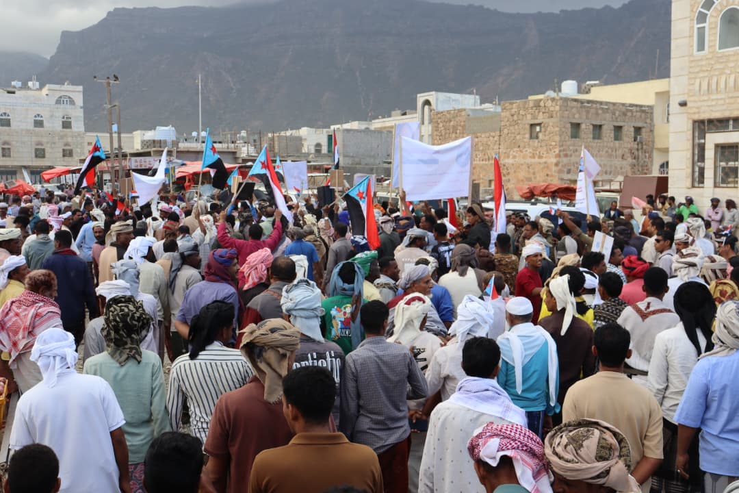 وتقدّم الحشود عدد من قيادات المجلس الانتقالي بالمحافظة، يتقدمهم رئيس انتقالي سقطرى سعيد عمر محمد بن قبلان، ومدير عام مديرية حديبو الأستاذ عبدالحليم محمد، إلى جانب قيادات سياسية واجتماعية، حيث ردّد المشاركون شعارات أكدت وحدة الصف الجنوبي، وتمسك أبناء سقطرى بثوابتهم الوطنية، ودعمهم الكامل للمجلس الانتقالي باعتباره المعبّر عن إرادة شعب الجنوب.
