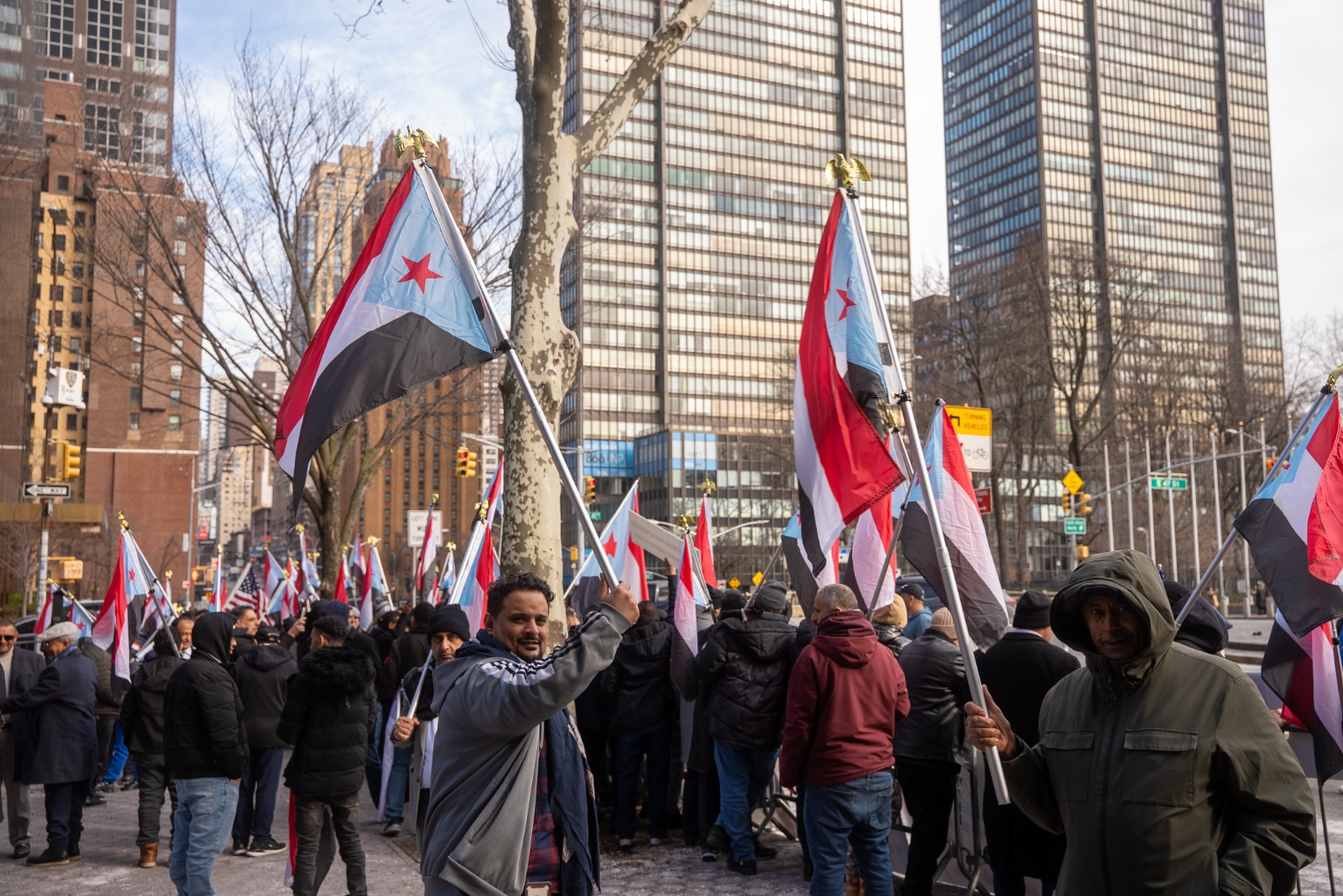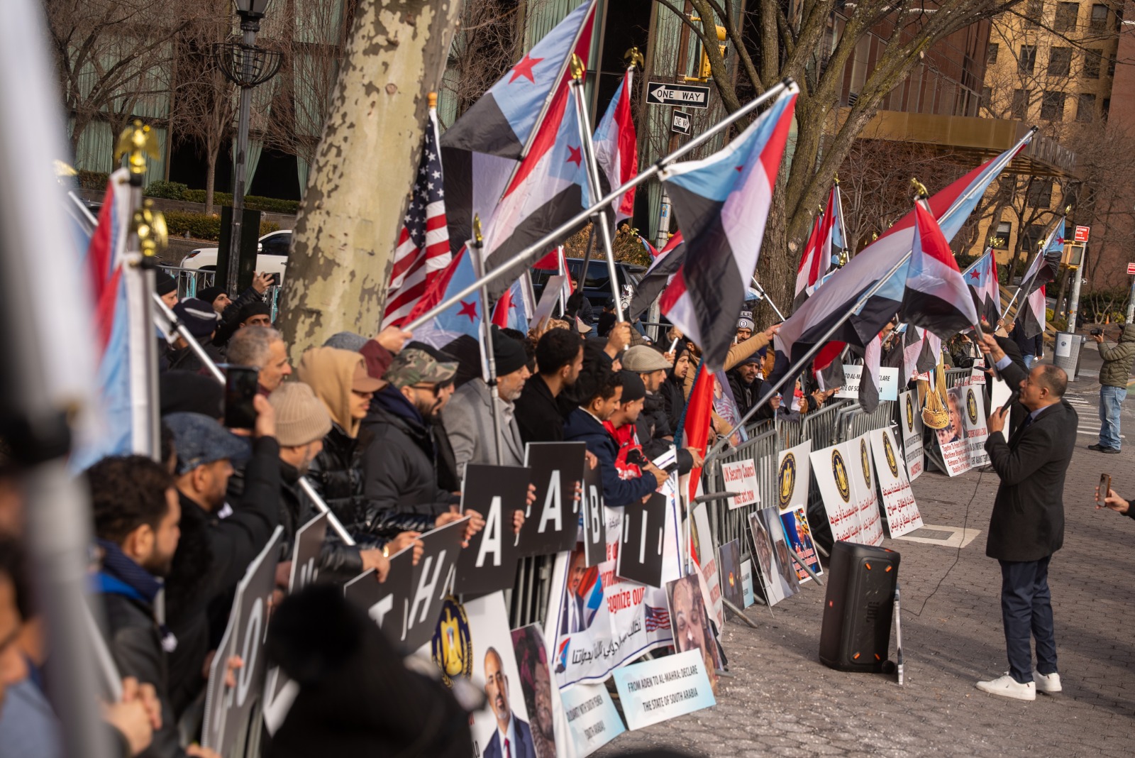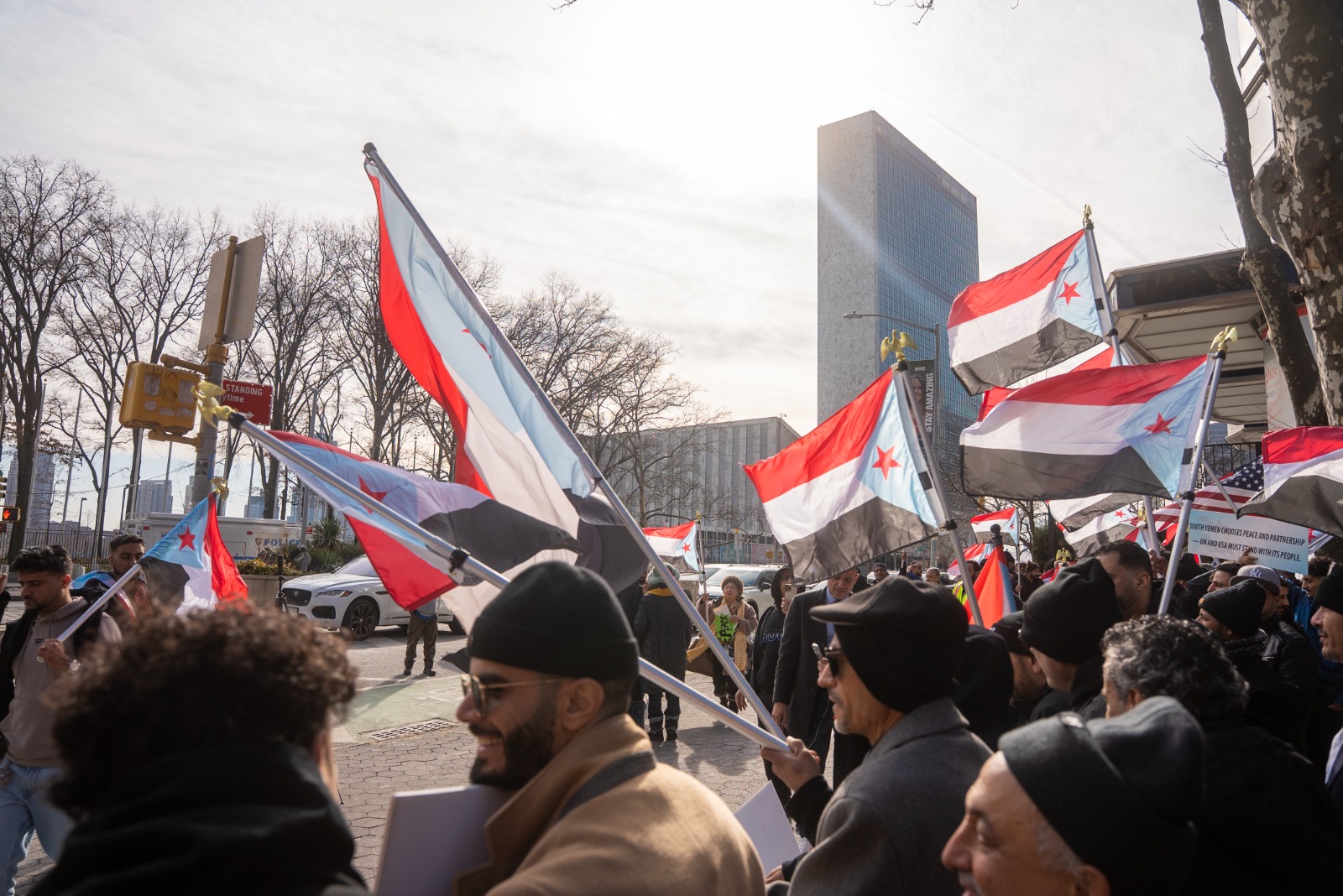 كما توجّه المتظاهرون من أبناء الجالية الجنوبية في الولايات المتحدة الأمريكية من أمام مبنى الأمم المتحدة إلى مبنى القنصلية السعودية، لإيصال رسالة واضحة تؤكد تمسّك أبناء الجنوب بحقهم في استعادة دولتهم.