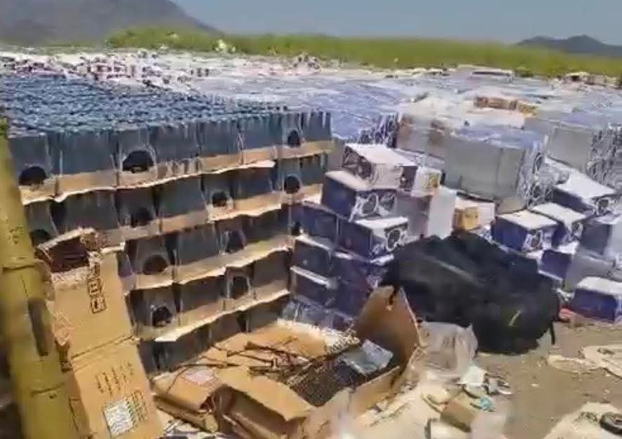 الحملة الأمنية بمديرية المضاربة ورأس العارة تضبط سفينة تحمل أسلحة ومنتجات ايرانية بالقرب من باب المندب