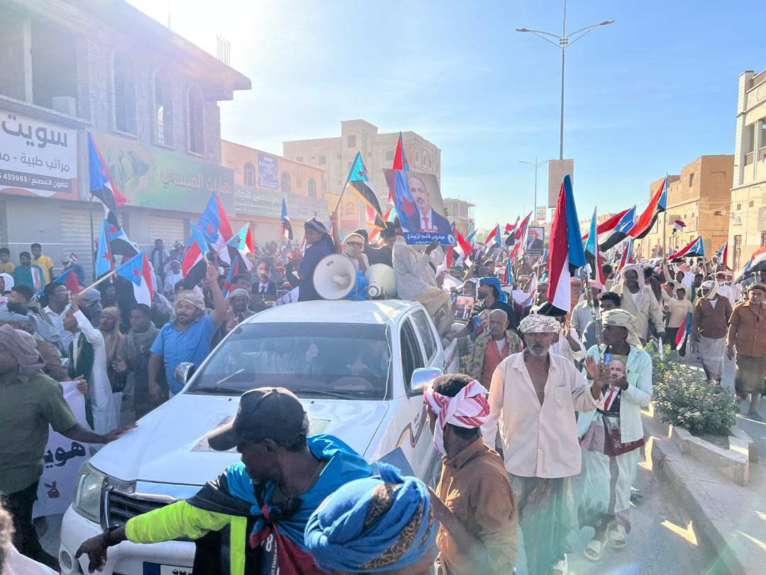 وأكد المشاركون أن هذه المسيرة تأتي تجديدًا للتفويض الشعبي للمجلس الانتقالي الجنوبي حاملا سياسيا لقضية شعب الجنوب، ورسالة واضحة برفض كل الأعمال الانتقامية ومحاولات كسر إرادة أبناء الجنوب أو الالتفاف على خياراتهم الوطنية، والتأكيد على وحدة الصف الجنوبي والاصطفاف خلف الرئيس القائد عيدروس قاسم الزُبيدي، وعلى أن حضرموت جزء أصيل من الجغرافيا والهوية الجنوبية.