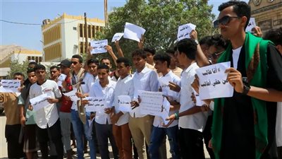 وقفة احتجاجية لطلاب جامعة العلوم والتكنولوجيا بعدن رفضا لرفع الرسوم الدراسية