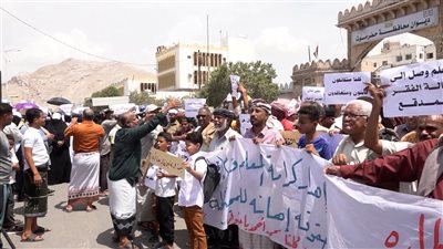 وقفة احتجاجية لمعلمي حضرموت للمطالبة بصرف مرتباتهم